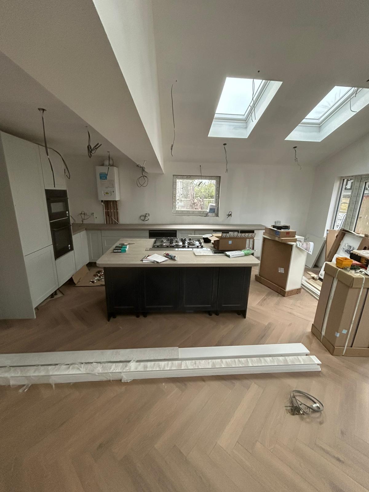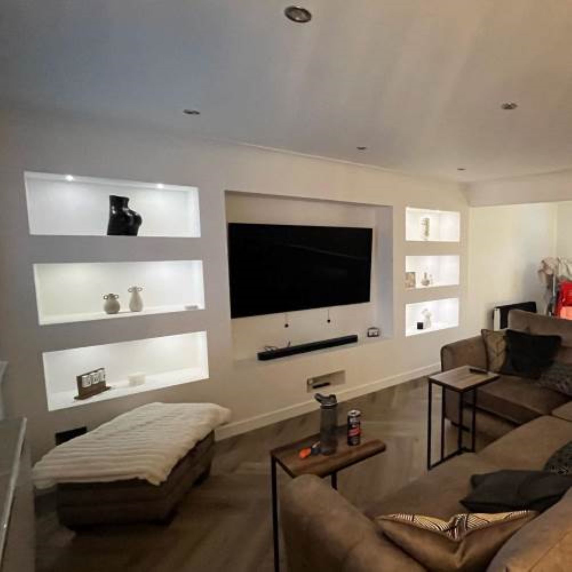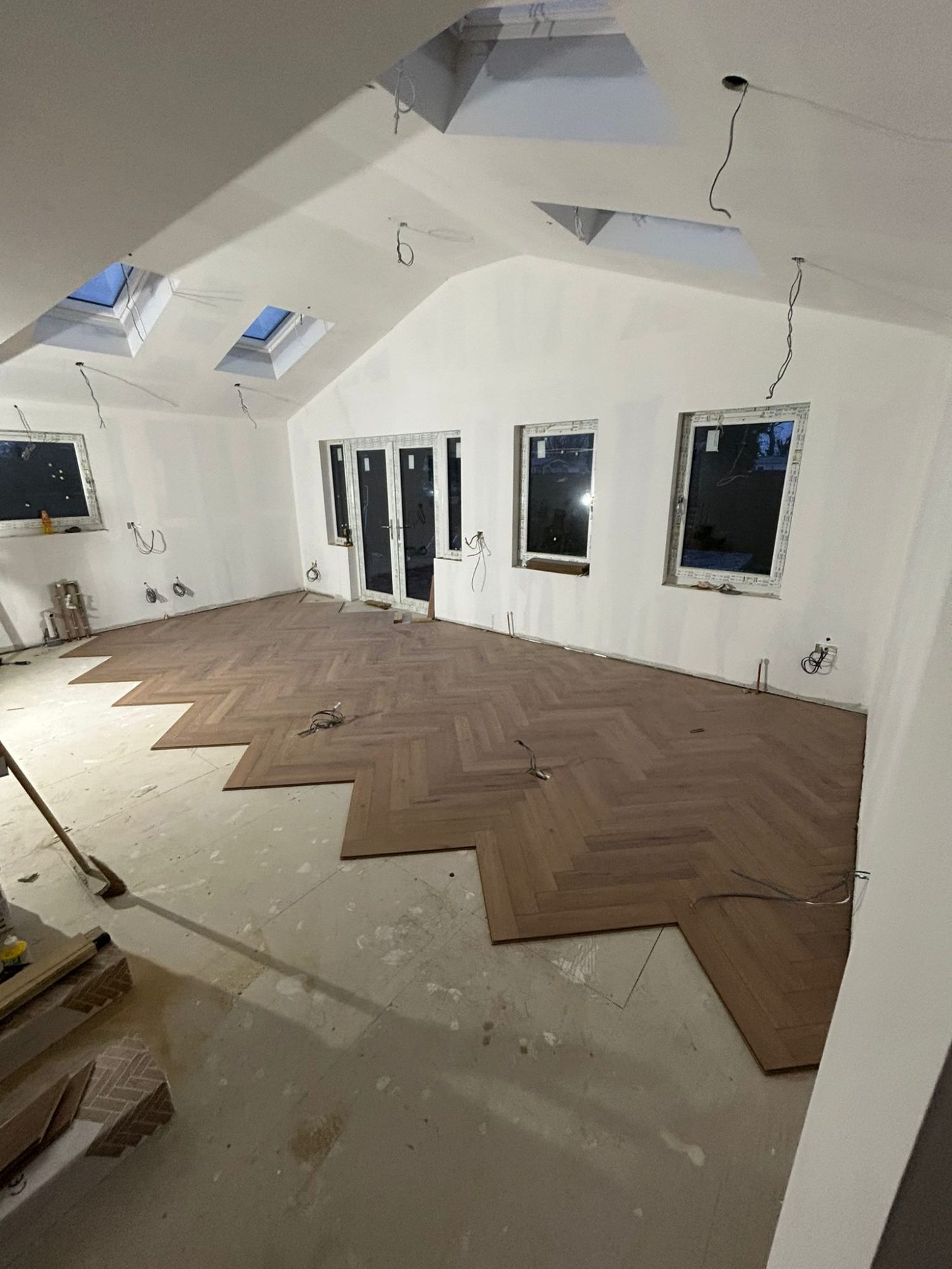 Flooring nearly complete, Client request Bespoke Media wall to left hand side