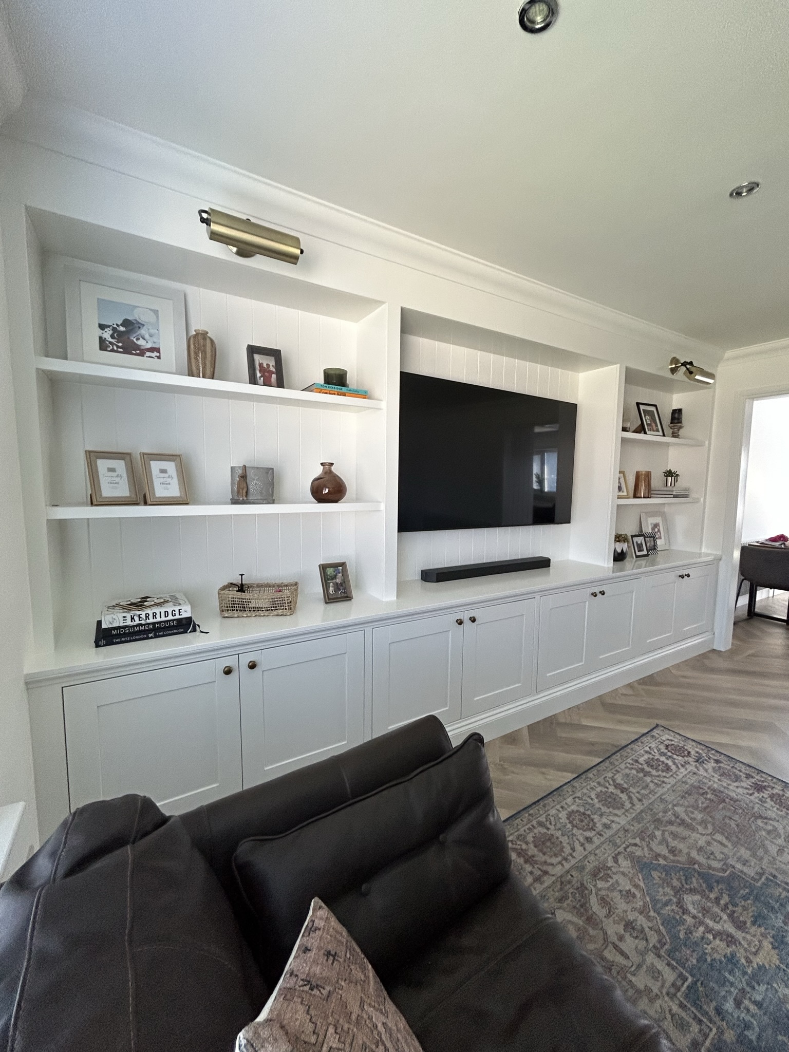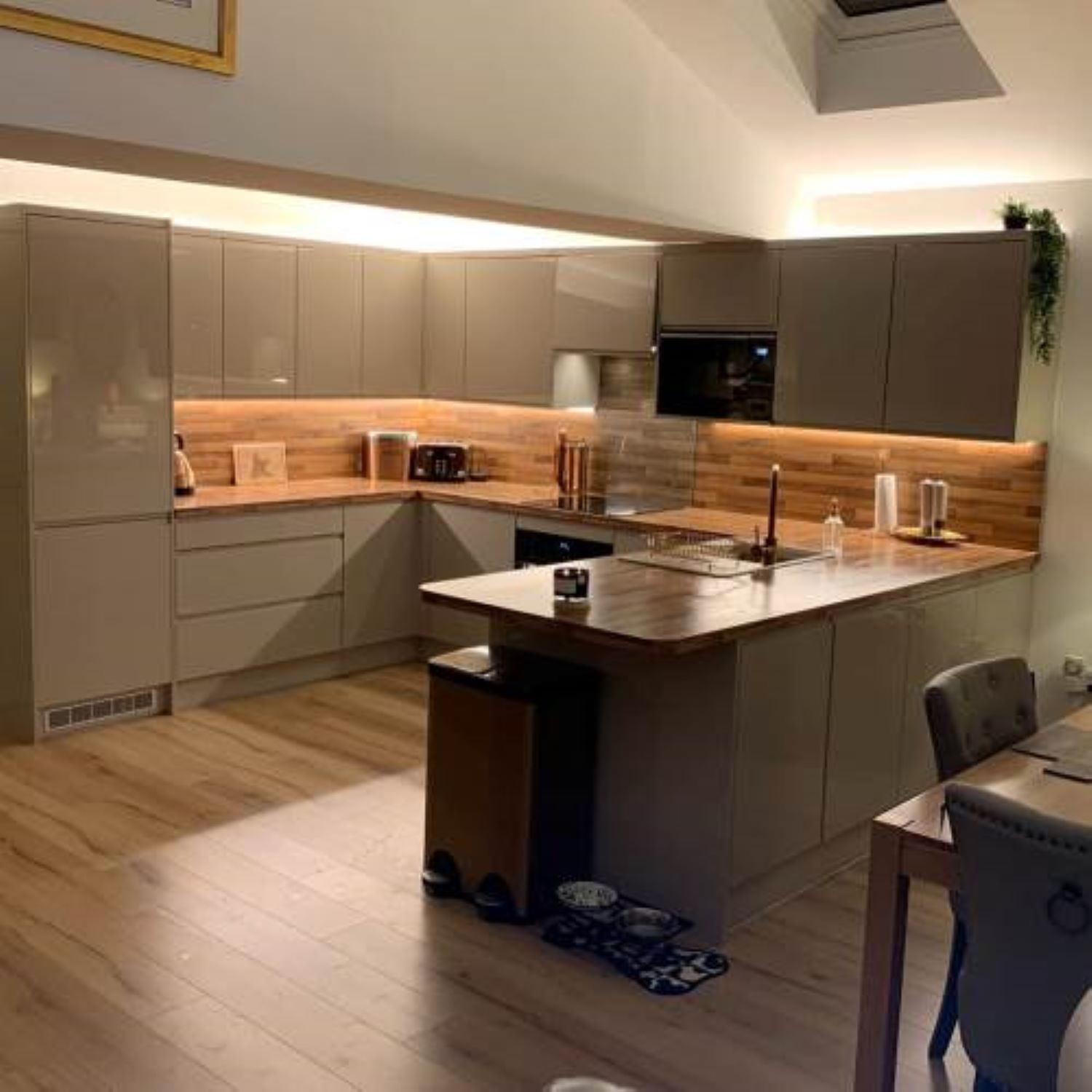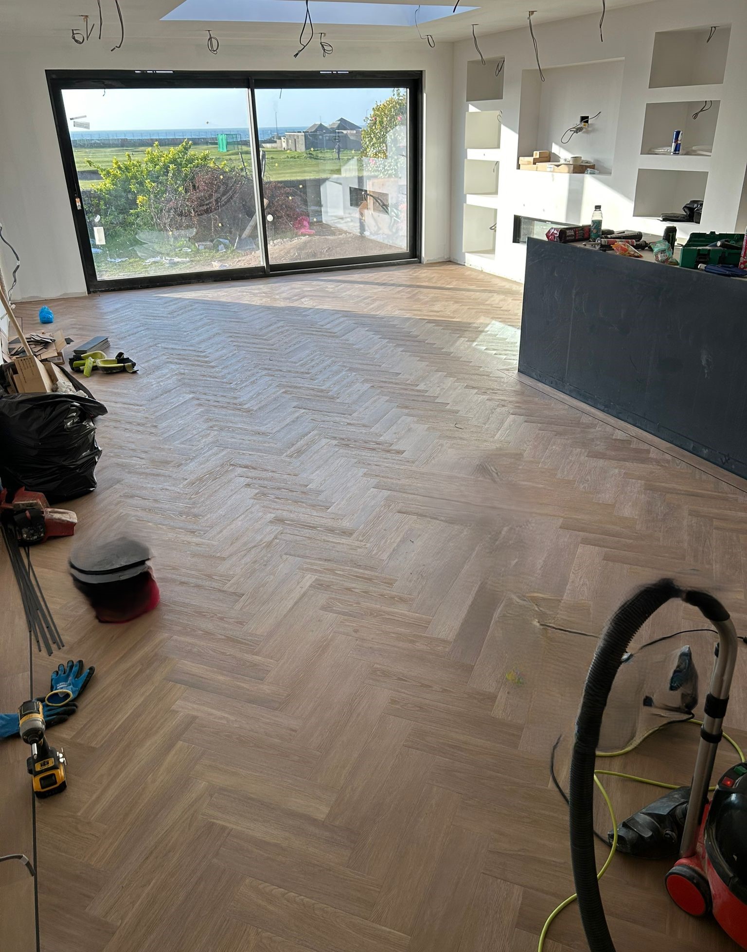 Flooring nearly complete, Client request Bespoke Media wall to left hand side